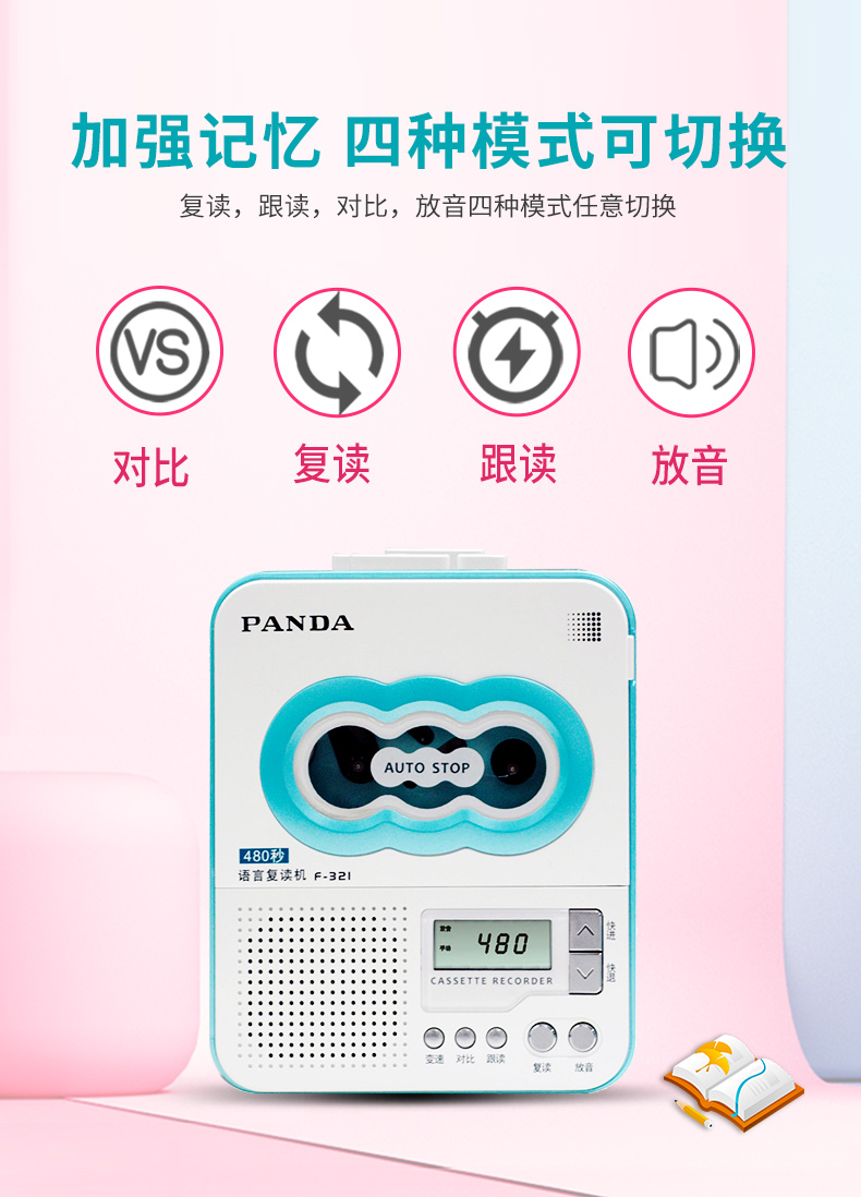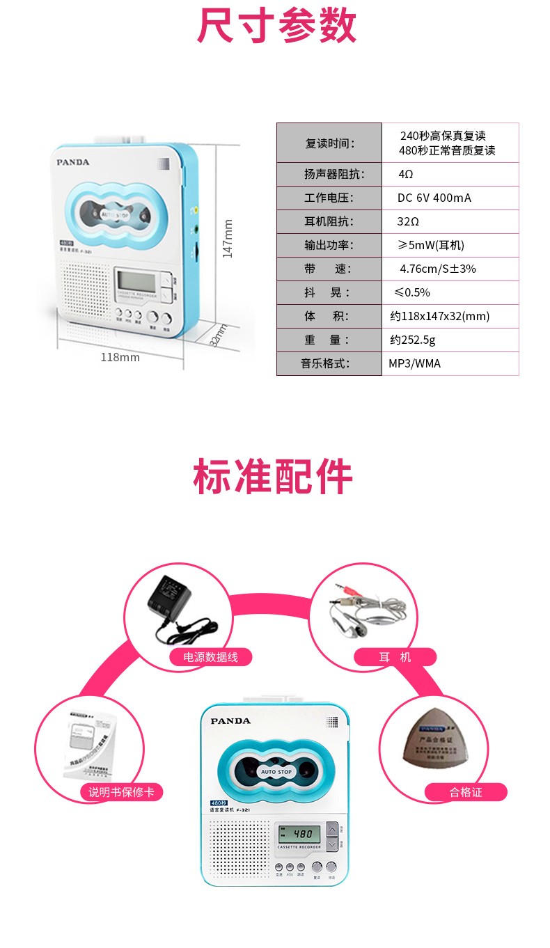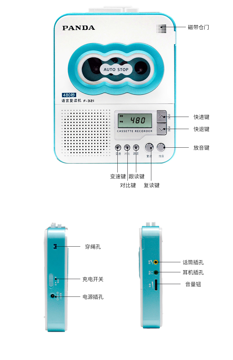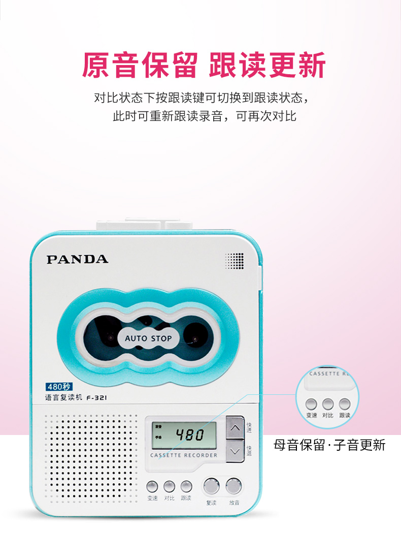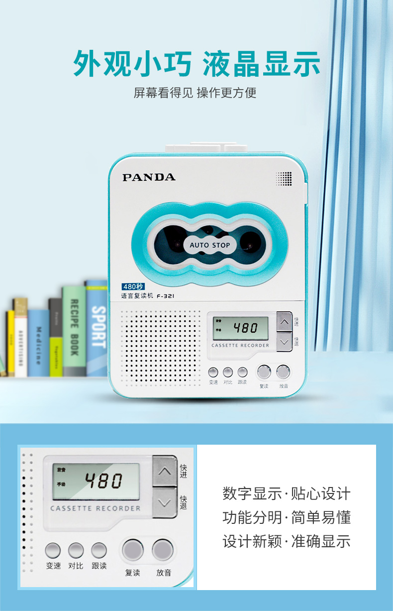 熊貓(PANDA) F321復(fù)讀機(jī)錄音機(jī)磁帶播放機(jī)英語學(xué)習(xí)機(jī)聽力播放器隨身聽單放機(jī)初中學(xué)生兒童磨耳朵 F-321藍(lán)色【含耳機(jī)+電源】