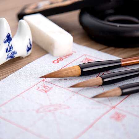 得力 deli 狼毫毛筆套裝 文房四寶國畫字帖練字筆墨紙硯大中小楷書初學者(40mm、35mm、30mm筆鋒毛筆)36005