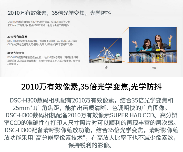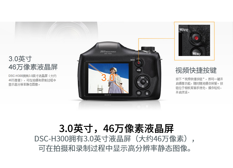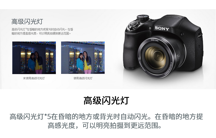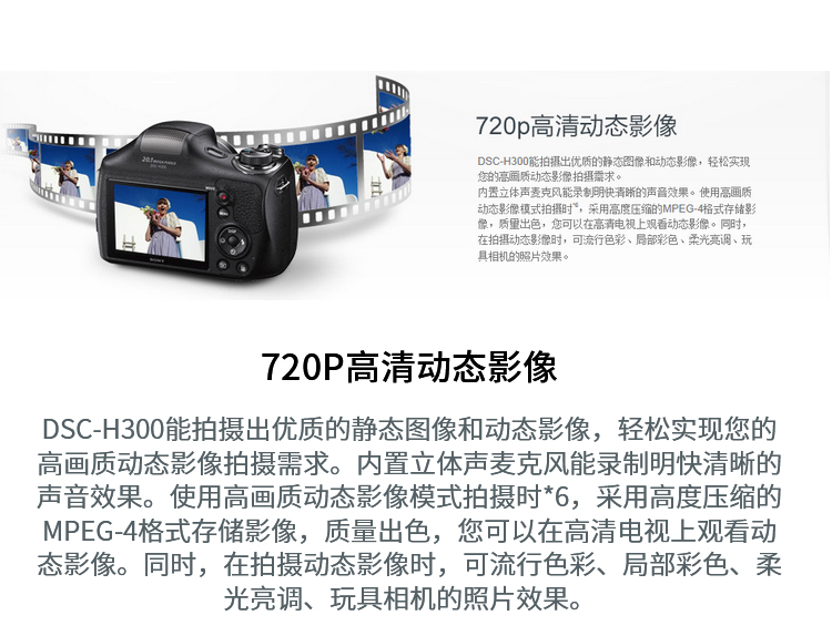 索尼(SONY) DSC-H300 數(shù)碼相機(jī)/照相機(jī) 約2010萬像素 35倍變焦 (含128G卡+電池套裝+三腳架+包+讀卡器)