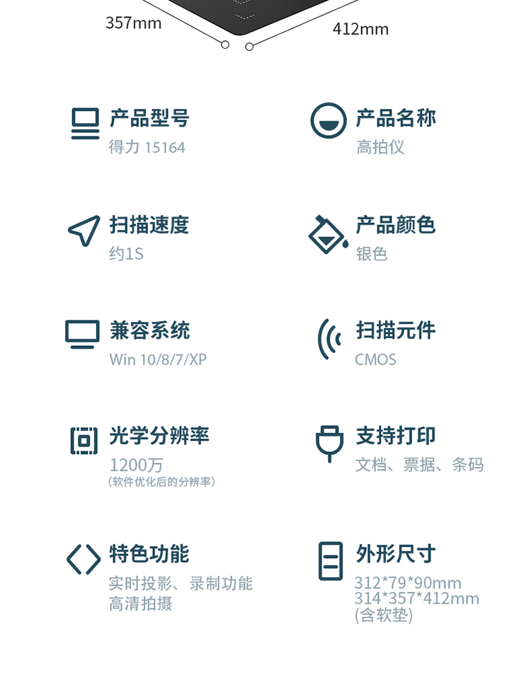 得力 deli 高拍儀 1200萬(wàn)高清像素 A4幅面軟底 文檔證件掃描儀 連續(xù)掃描 自動(dòng)糾偏 15164