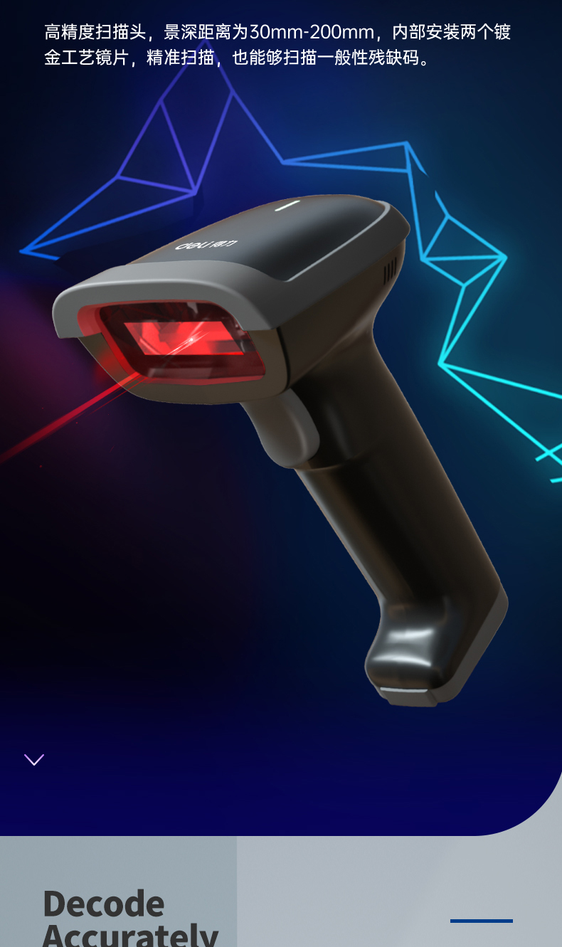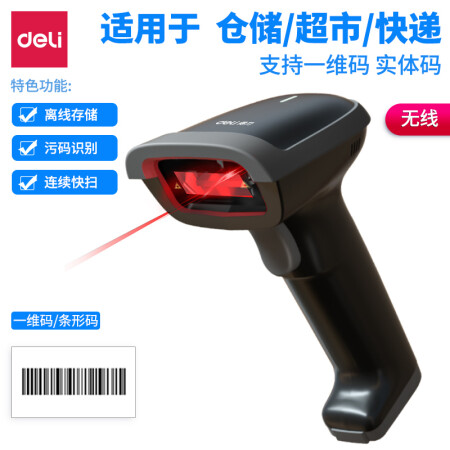 得力 deli 14881S無線一維激光掃描槍掃碼槍掃碼器餐飲零售快遞倉儲物流超市 商品紙質(zhì)條碼掃描