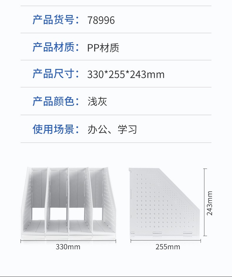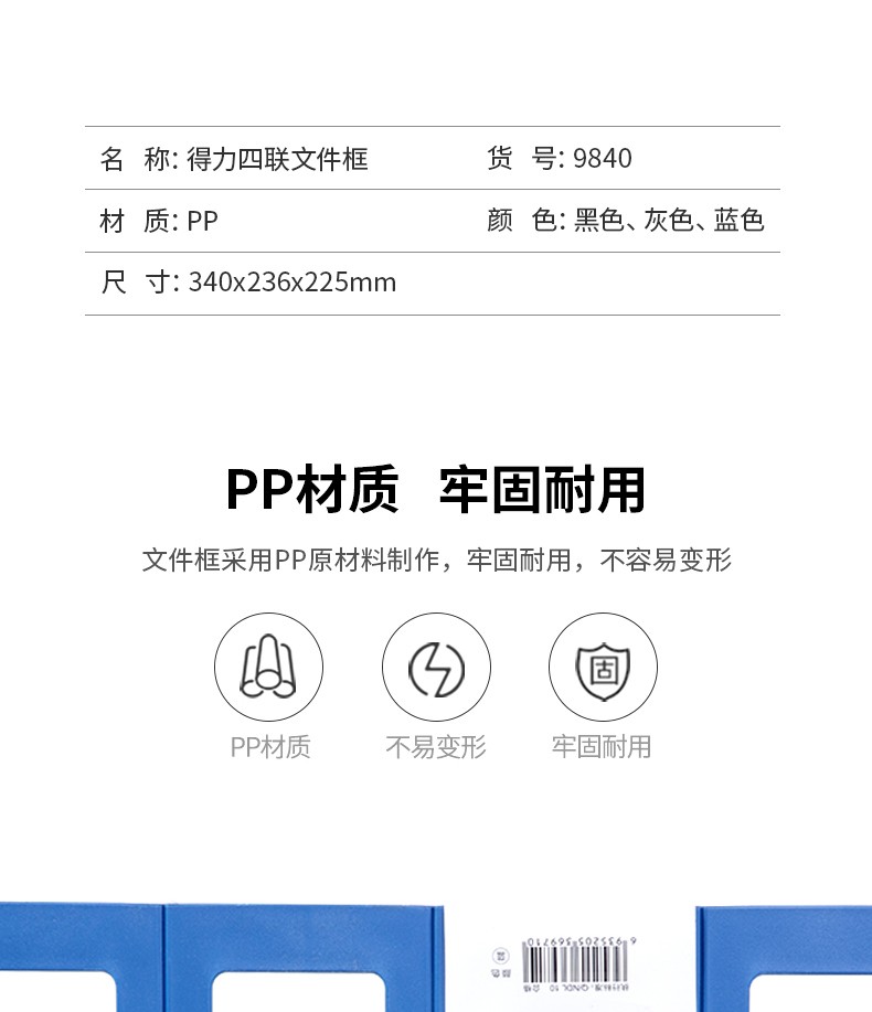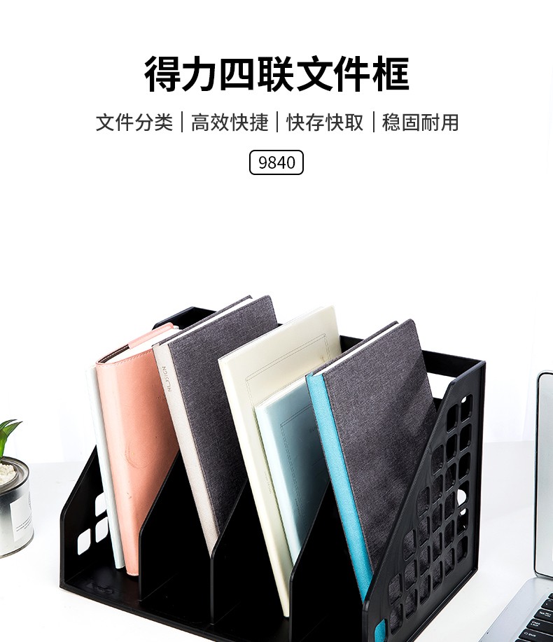 得力 deli 辦公文件框/文件筐/文件架 加厚穩(wěn)固型 辦公用品 一體式四聯(lián)灰色 9840