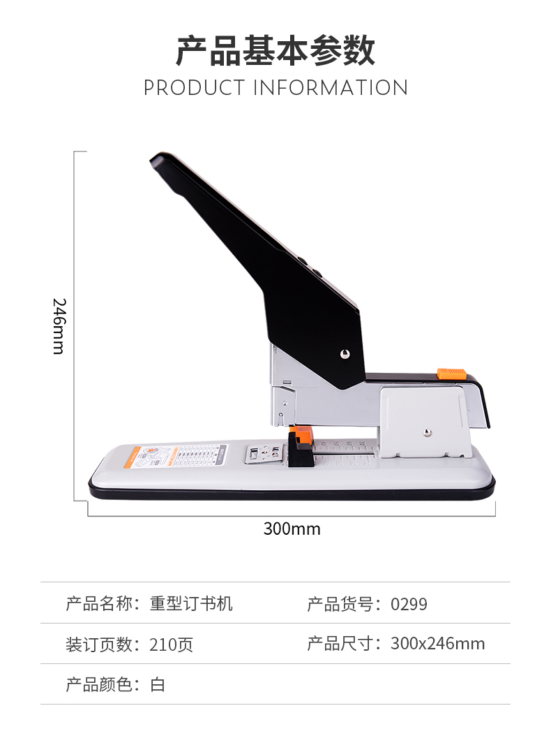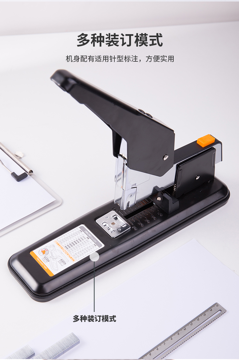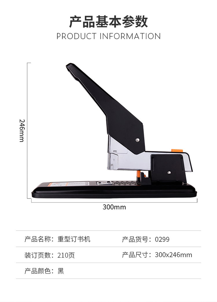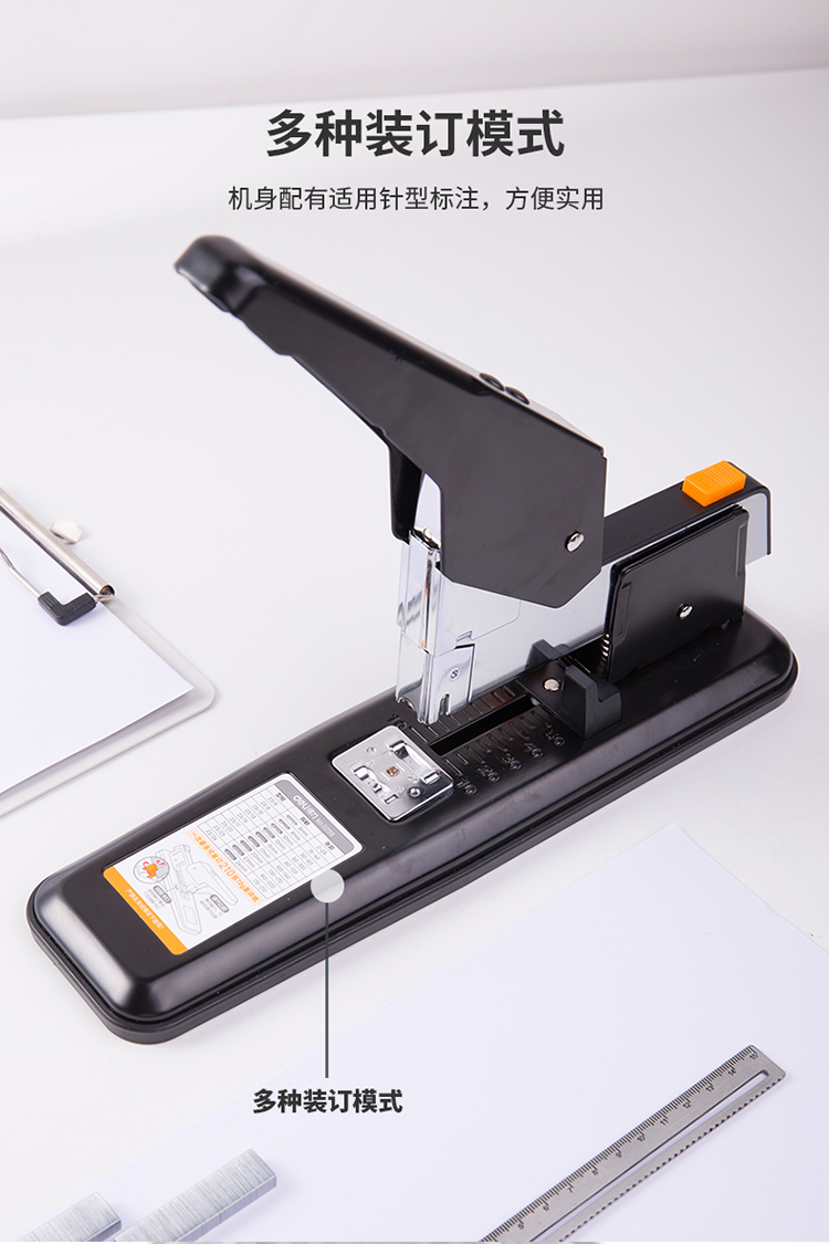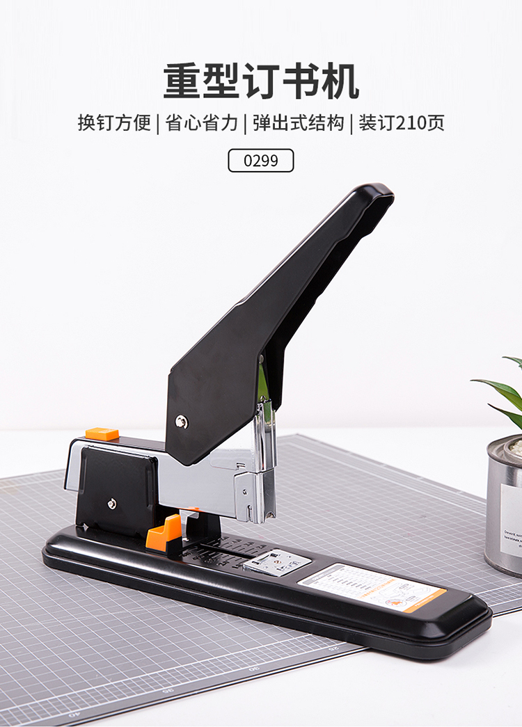 得力(deli)訂書機 大 重型訂書器釘書機 加厚訂書機 可訂約210頁 黑色 0299