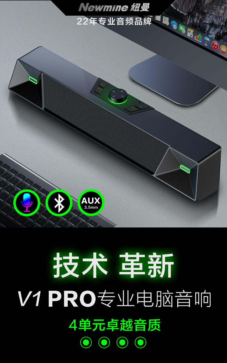 紐曼(Newmine)V1 PRO電腦音響藍(lán)牙音箱臺式機(jī)電腦音響低音炮家用桌面電腦游戲音箱
