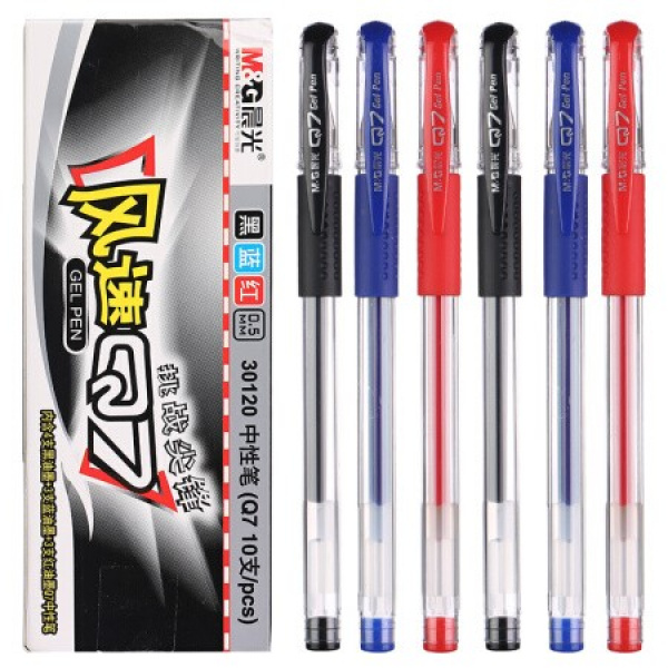 晨光(M&G)文具Q7/0.5mm黑色中性筆 經(jīng)典拔蓋子彈頭簽字筆 水筆套裝(4黑3藍3紅) 10支裝AGP30120