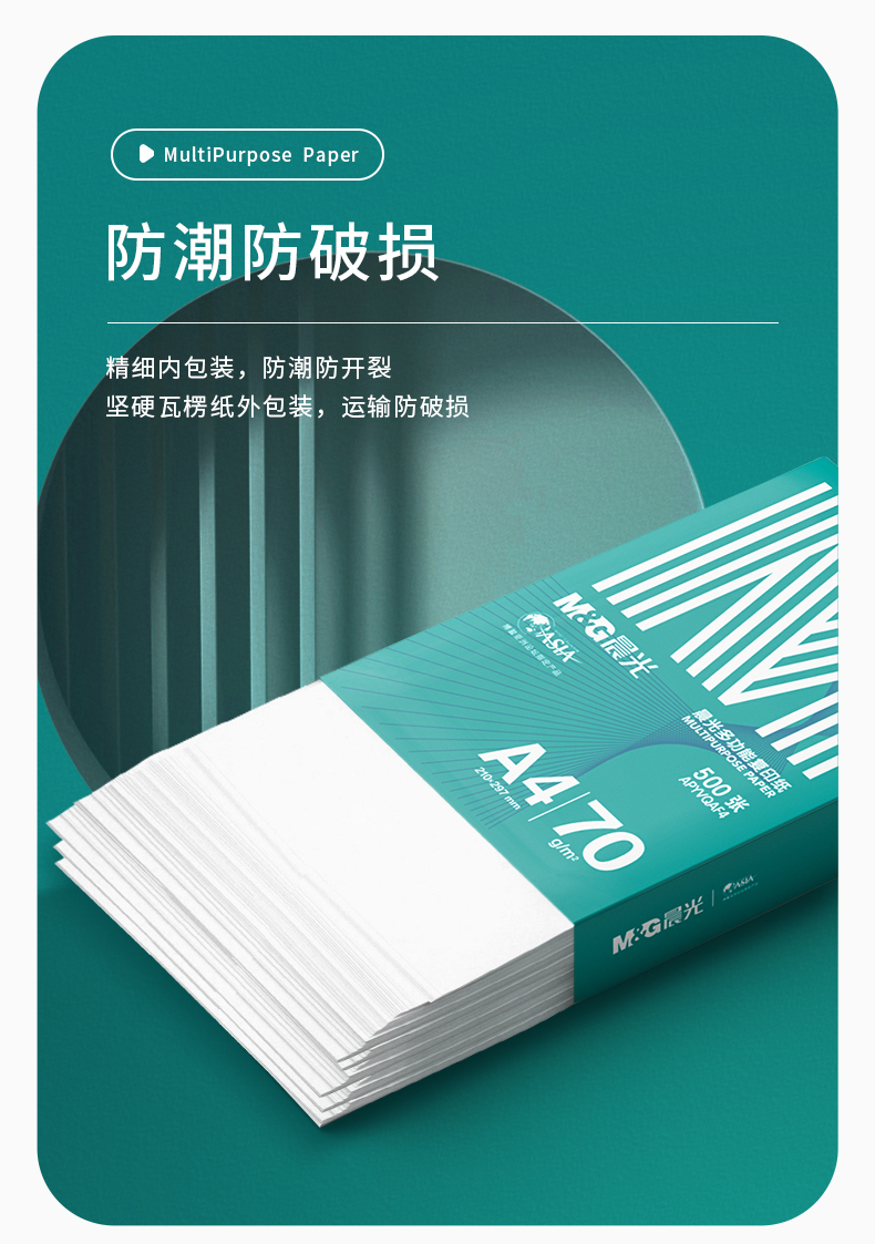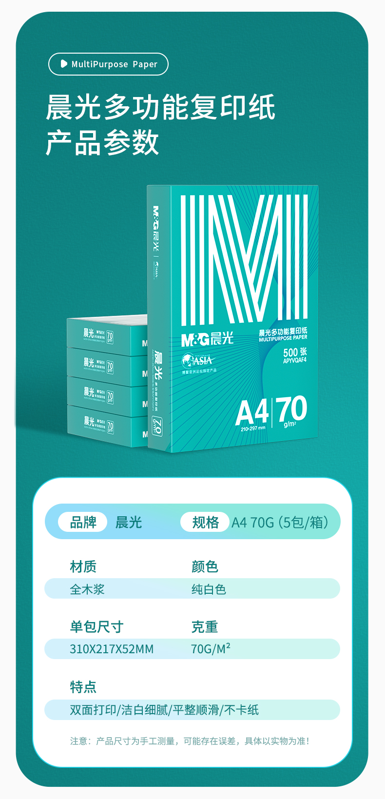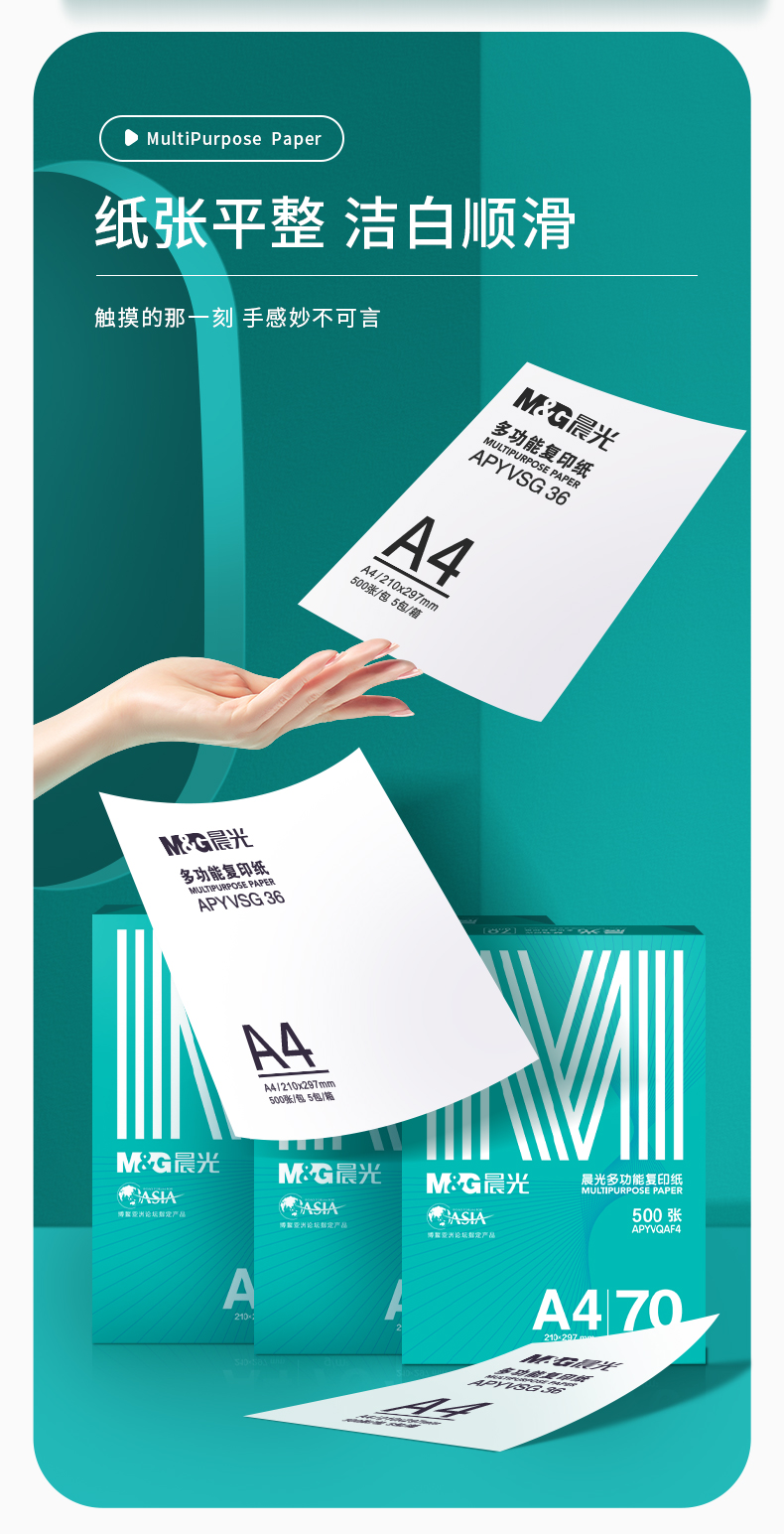 晨光(M&G)綠晨光 A4 70g 多功能雙面打印紙 高性價比復印紙 500張/包 5包/箱(整箱2500張) APY61AF9