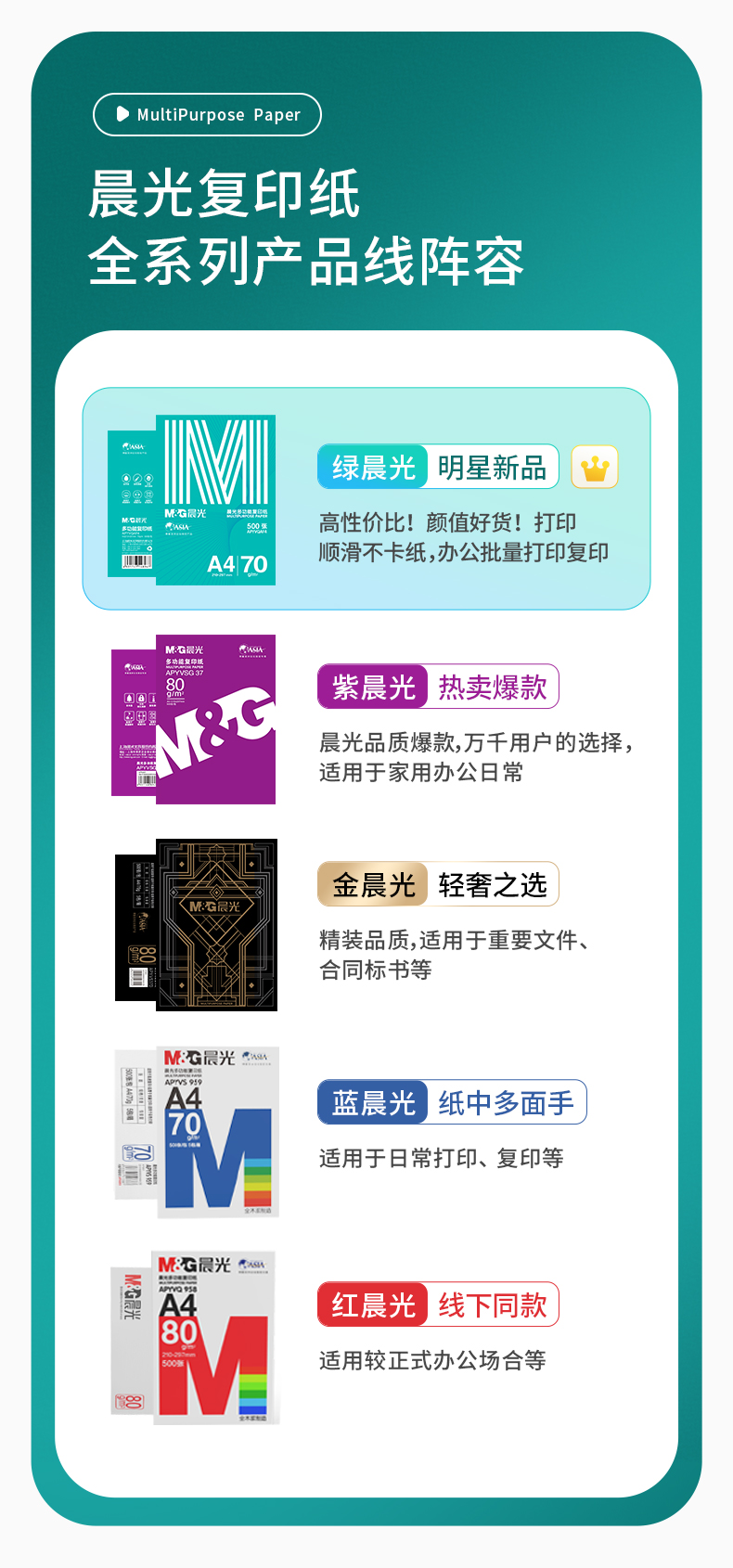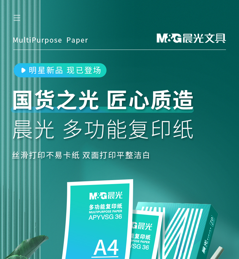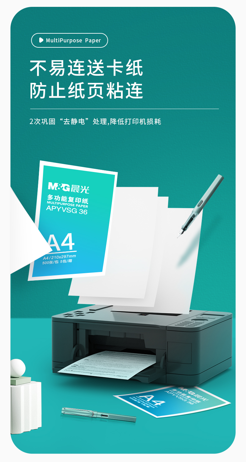 晨光(M&G)綠晨光 A4 70g 多功能雙面打印紙 高性價比復印紙 500張/包 5包/箱(整箱2500張) APY61AF9