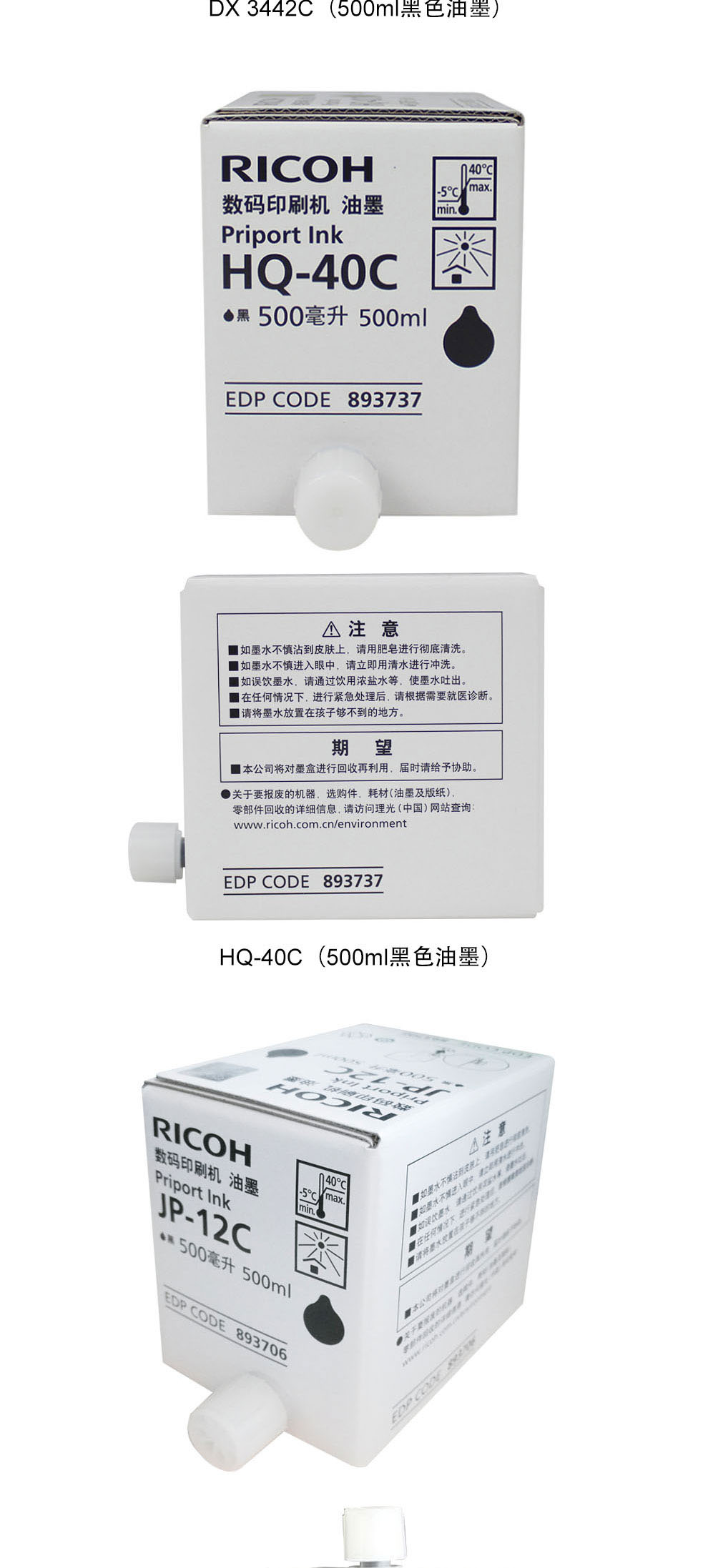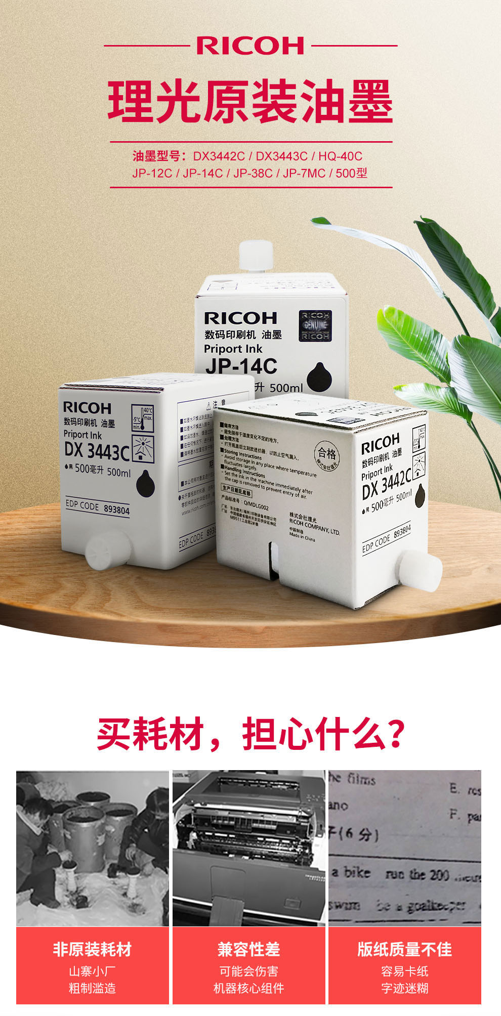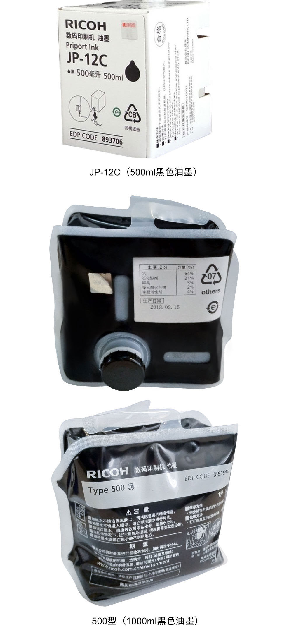 理光(Ricoh) 數(shù)碼印刷機(jī)油墨 一體化速印機(jī)油墨 黑油墨 JP-12C(500cc/瓶) 一瓶 理光JP1260 JP2800 3800