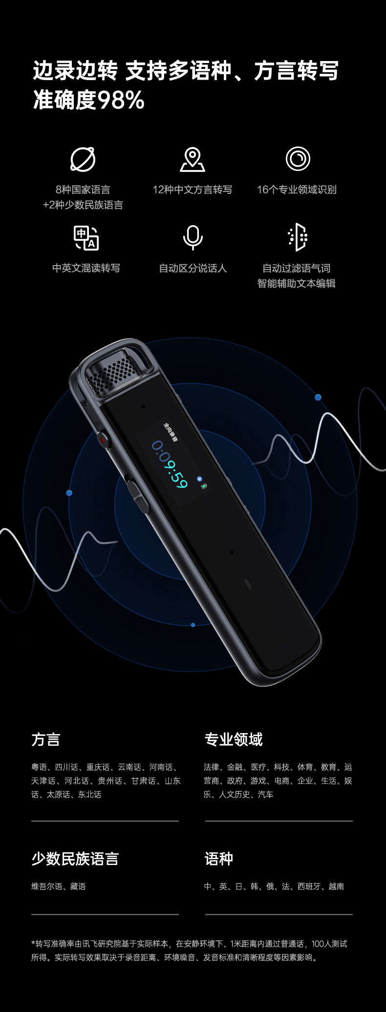 科大訊飛智能錄音筆H1轉(zhuǎn)寫(xiě)助手 32G 專業(yè)高清降噪 會(huì)議錄音轉(zhuǎn)文字 錄音器 實(shí)時(shí)翻譯 微型便攜