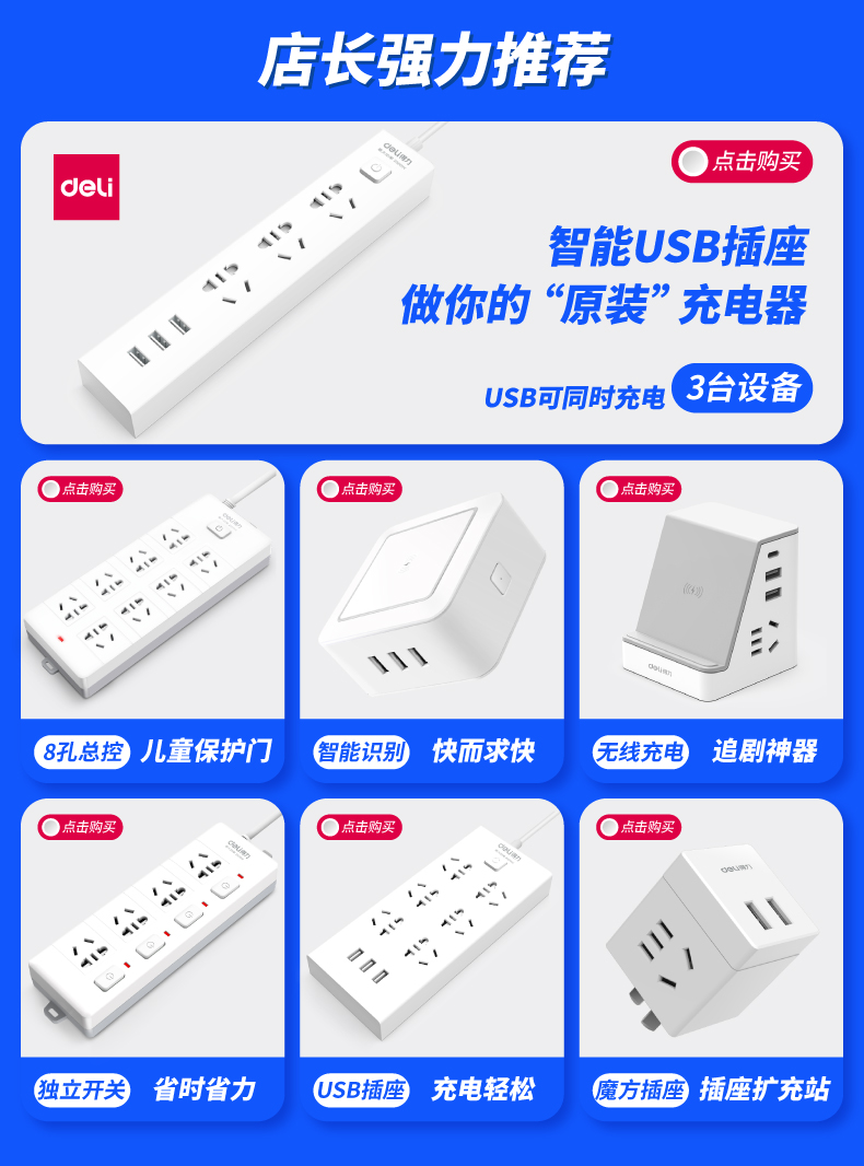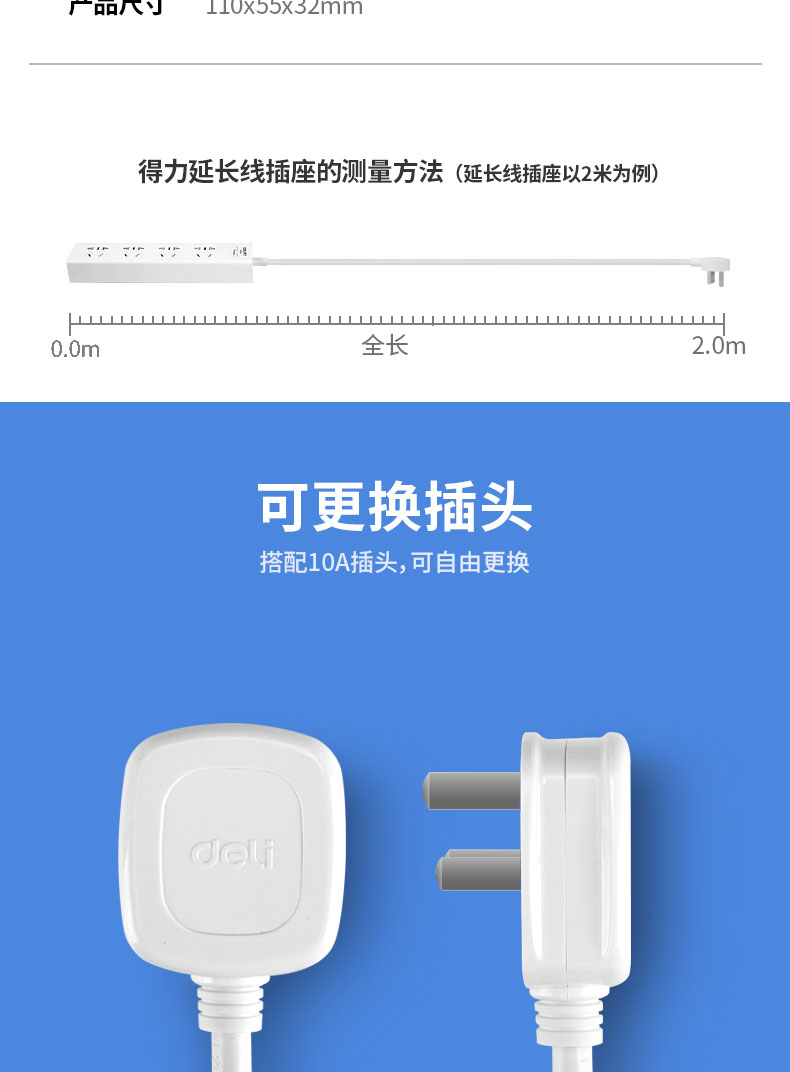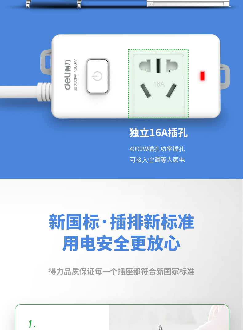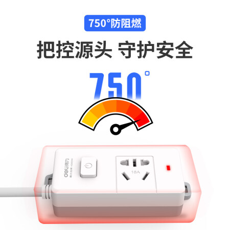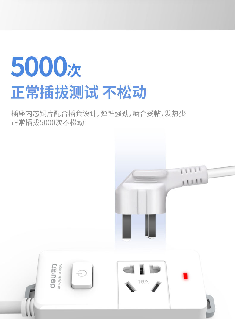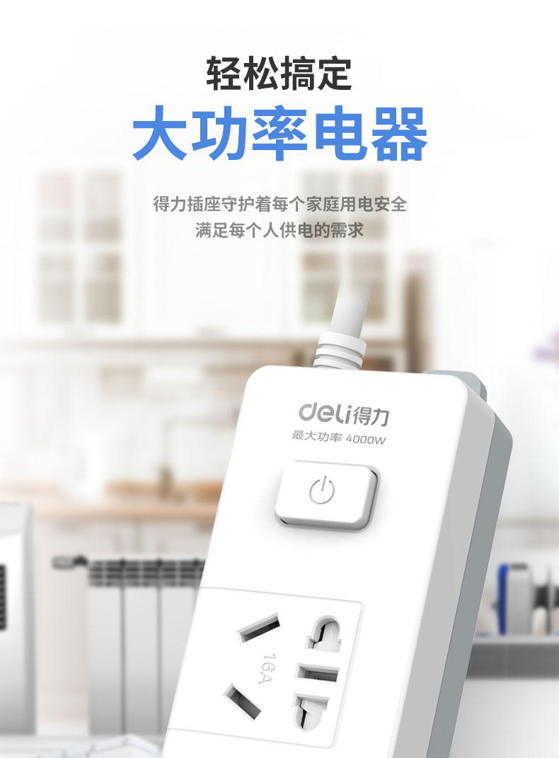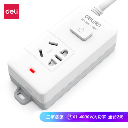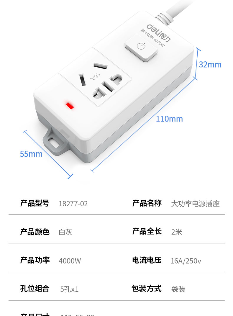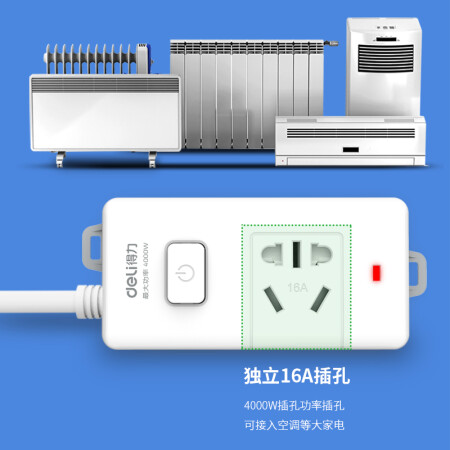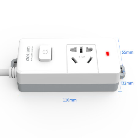 得力 deli 16A大功率插座 4kw空調(diào)插座/插排/插線板/排插/接線板 單孔 總控開關(guān) 18277-02(送10A插頭)