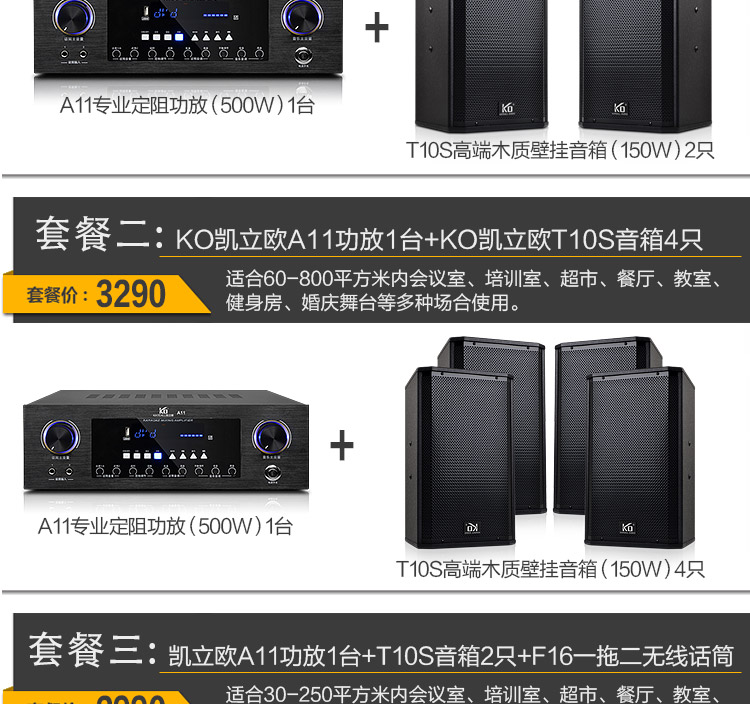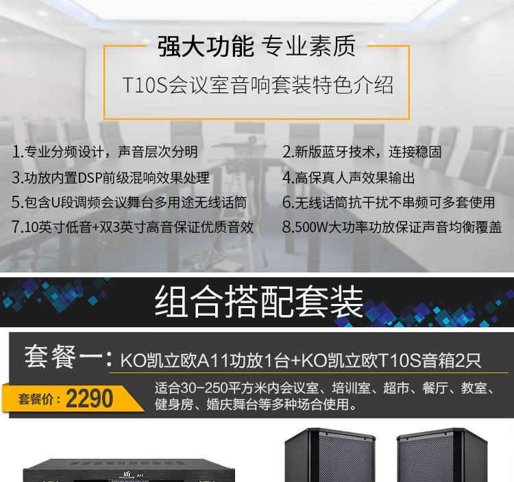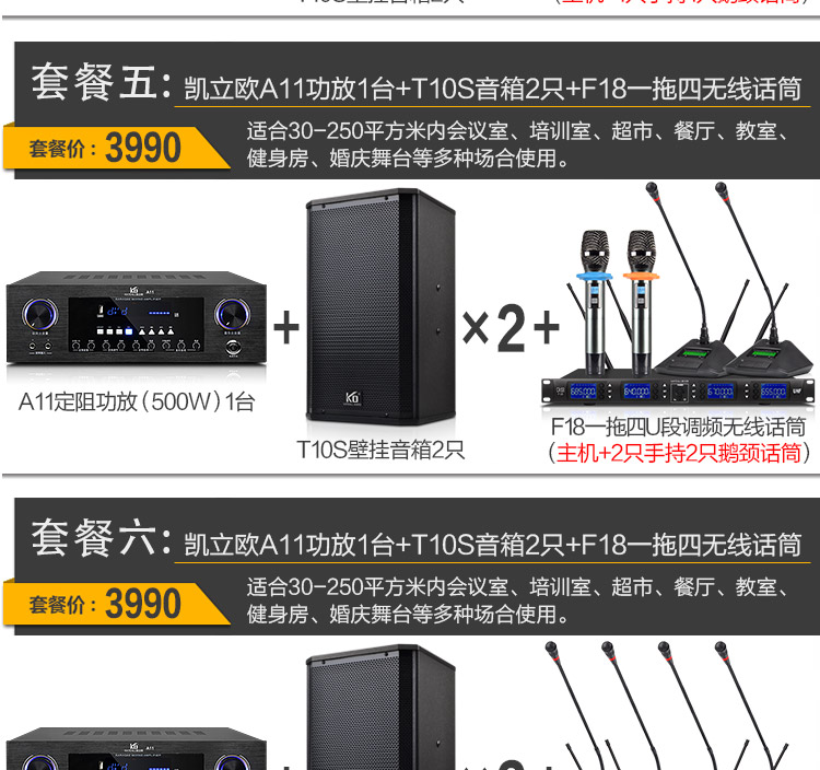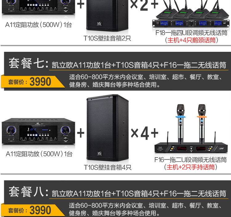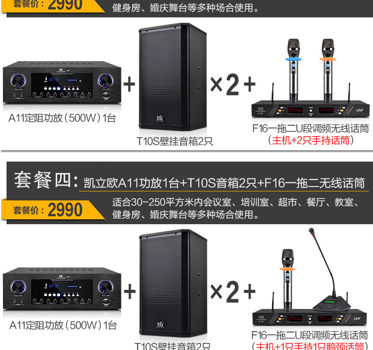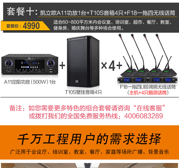 凱立歐T10S專業(yè)中小型會議室音響套裝 會議音響壁掛式音箱專業(yè)功放無線話筒組合 培訓舞臺演出系統(tǒng)設備 A11+T10S四只+F16(2手持麥)