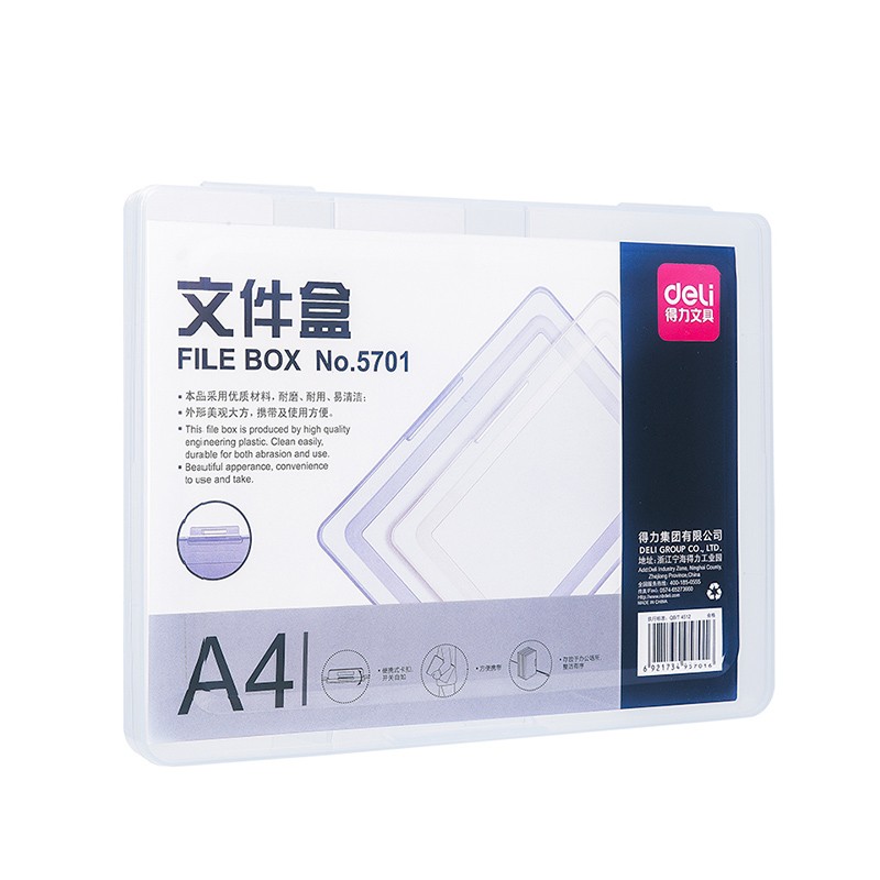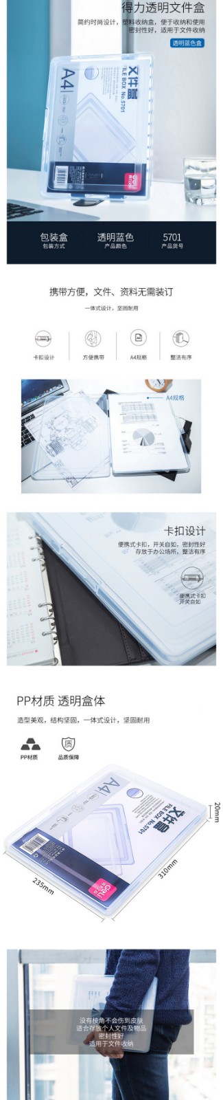得力 5701 檔案盒 A4透明便攜卡扣文件盒