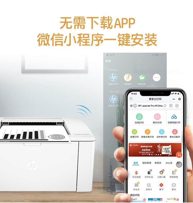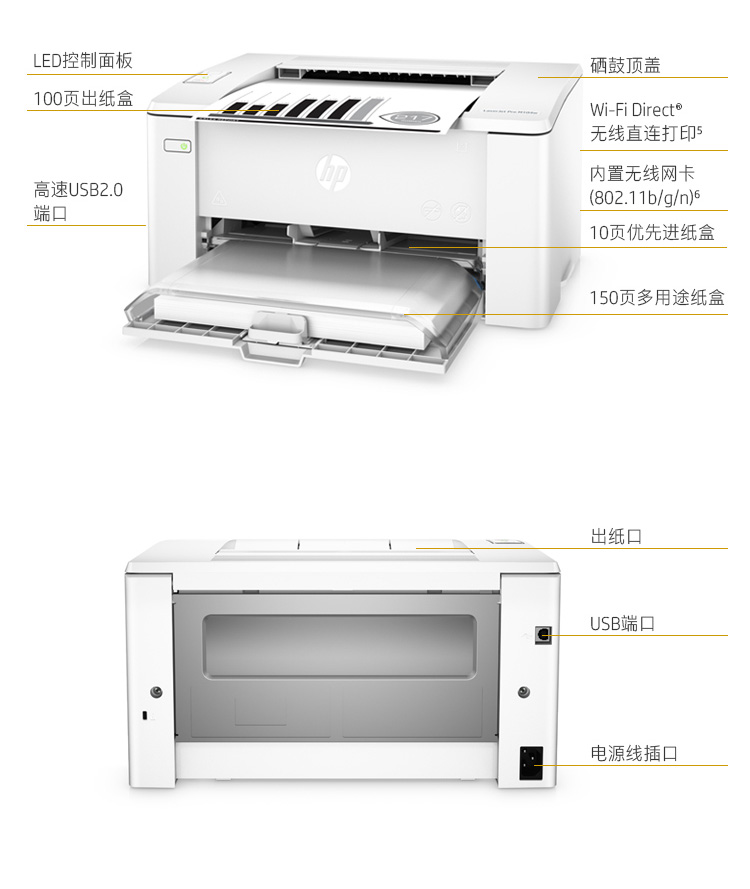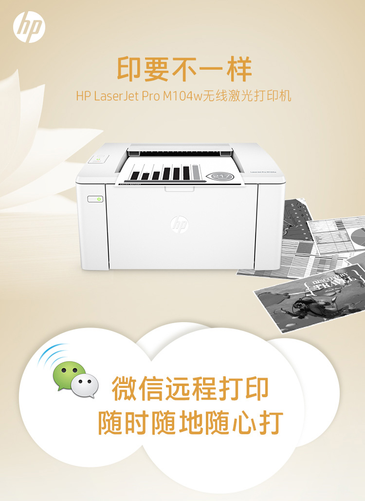惠普(HP)M104w黑白激光打印機 無線 手機打印 家用 小型辦公 P1108/1106升級wifi版