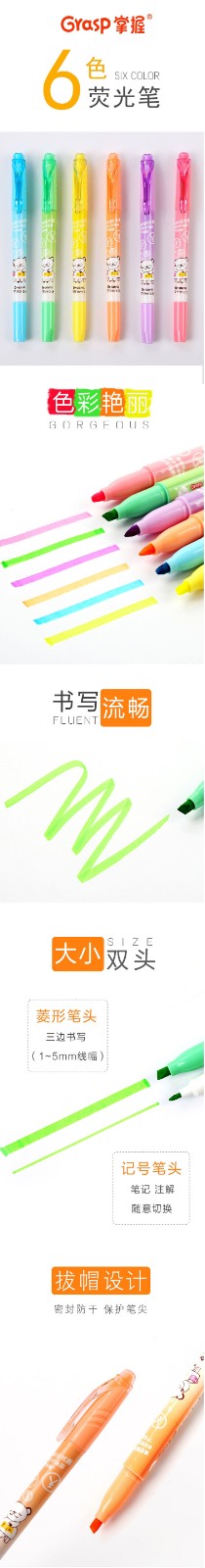 掌握/GRASP ZW-556-6 書寫用筆類用具 雙頭熒光筆 6色/套
