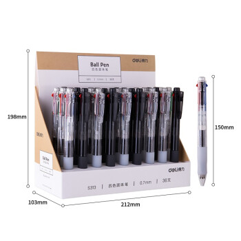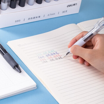 得力(deli)圓珠筆中油筆英文筆多規(guī)格按動(dòng)式橡膠握手流暢書寫圓珠筆 S313 單支裝 四色圓珠筆